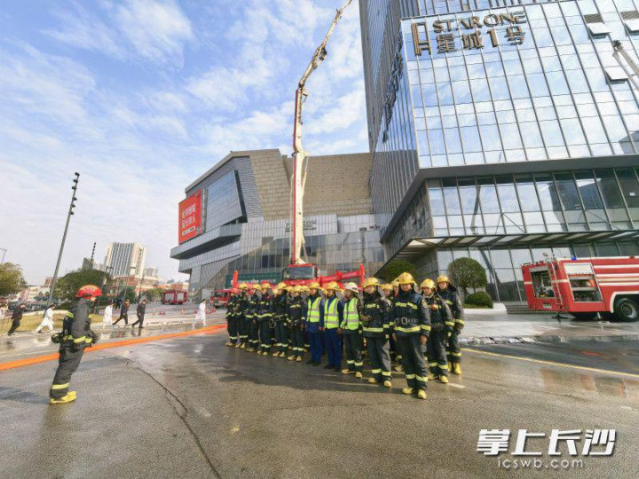 作为雨花区140栋超高层建筑中的典型代表,此次演练场地星城1号公寓楼地上33层、地下3层,建筑高度达138米,集商业与居住功能于一体,具有人员密集、结构复杂的特点,消防安全防控难度较大。针对该类型建筑火灾“处置难度大、联动要求高、安全风险高”的特性,本次演练精准设置单位内部自救、大队全勤指挥响应、首批力量到场处置等7个科目,出动4个消防救援站16台消防车64名指战员。