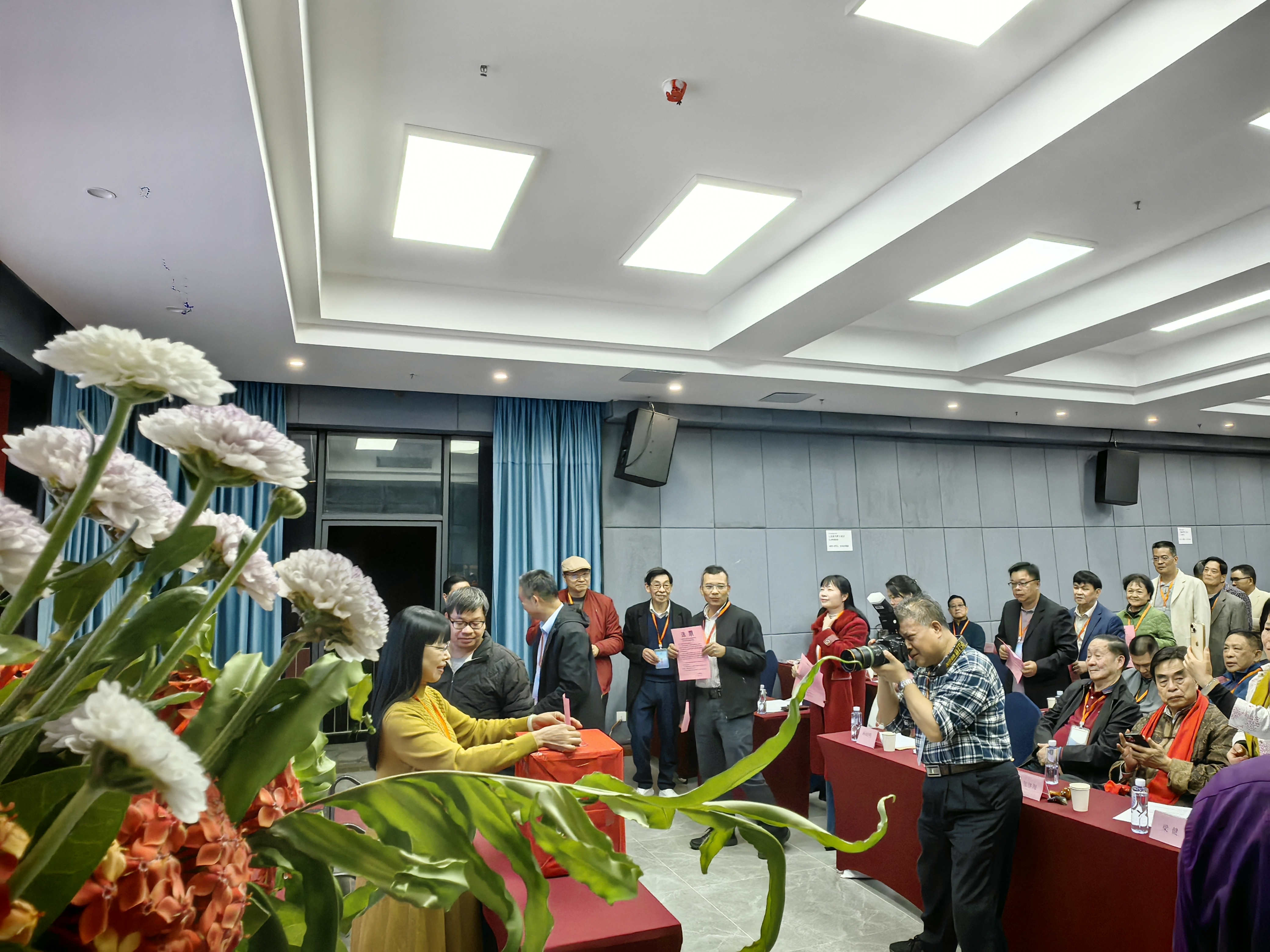 接着,曾会长主持无记名投票的选举环节。曾会长宣读了《广东楹联学会“七代会”选举办法》以及宣读《总监票人、监票人、唱票人、计票人名单》。与会者举手表决通过了以上两项事项。