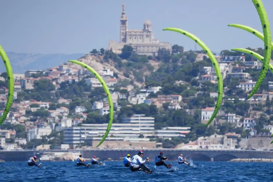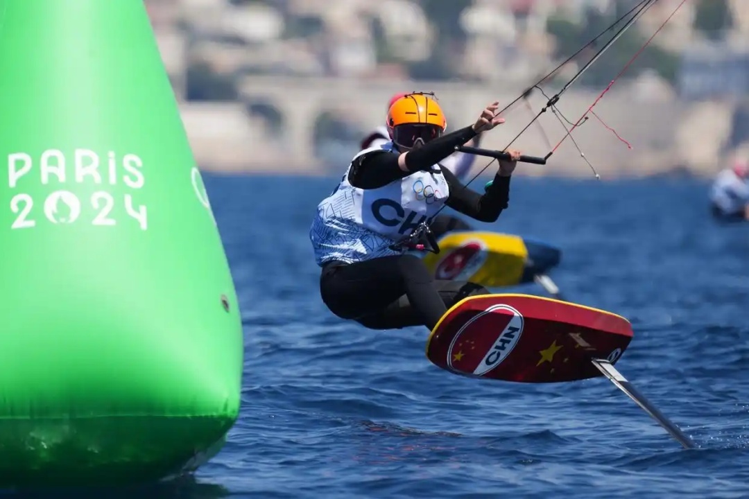 *中国选手陈静乐,在2024年巴黎奥运会帆船项目女子风筝板比赛现场,来源新华社