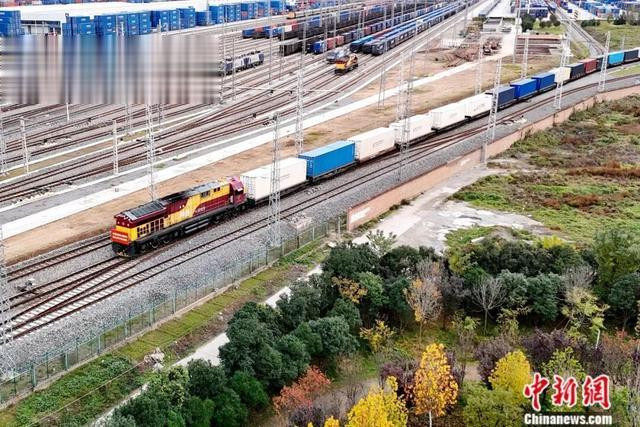 2025年11月17日,X9043次中欧班列从位于陕西西安的西安国际港站发出。2025年前10月中欧班列(西安)累计开行5063列,创历年同期最高纪录。中新社记者张远摄